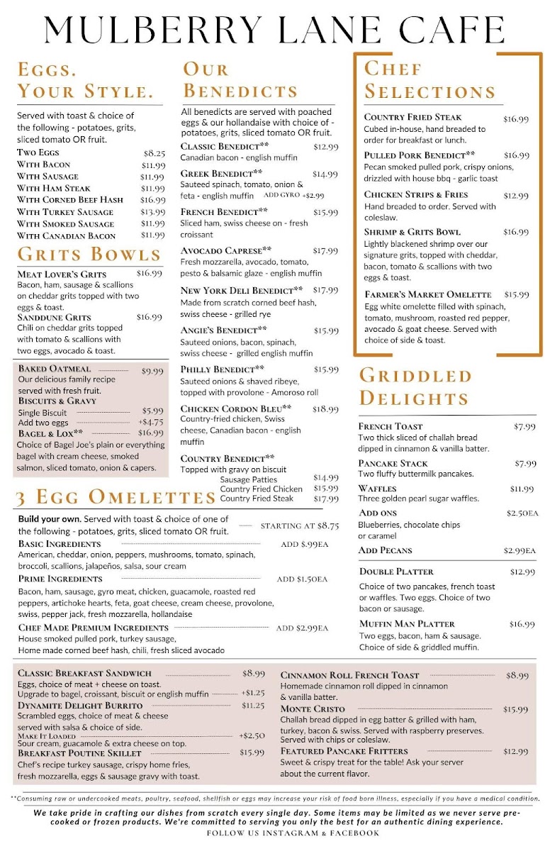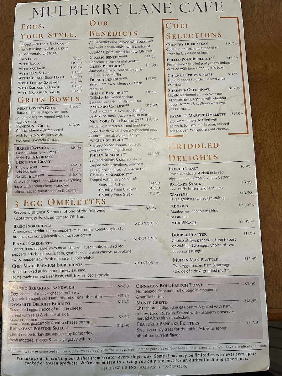 Welcome to Mulberry Lane Cafe, a charming haven for breakfast lovers in Melbourne, FL! Nestled at 3440 N Harbor City Blvd, this delightful eatery showcases a menu bursting with flavor and creativity.